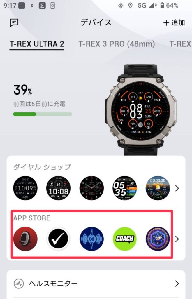 アプリの追加はZeppアプリのデバイスのホーム画面からできますよ😊
