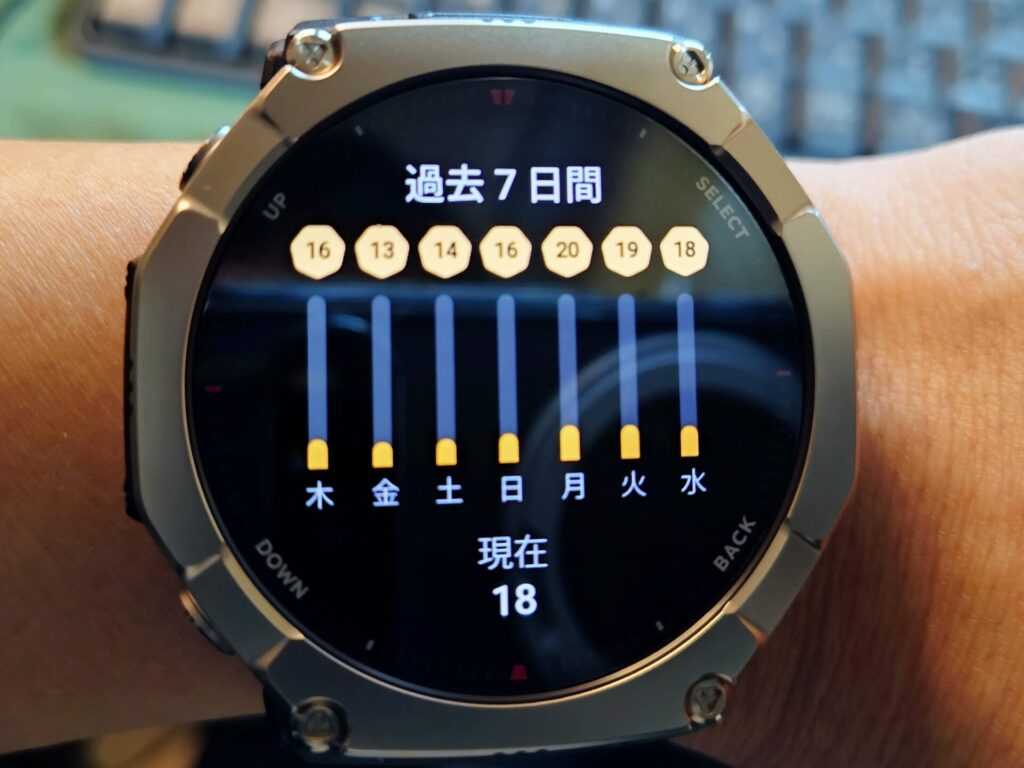 大画面のAmazfit T-Rex Ultra 2なので1ヶ月の表示も見やすい😆