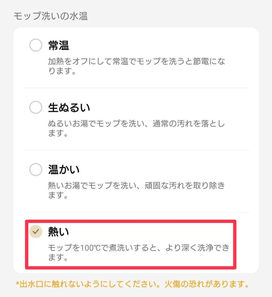 アプリでモップ洗浄の温度変更ができます✨