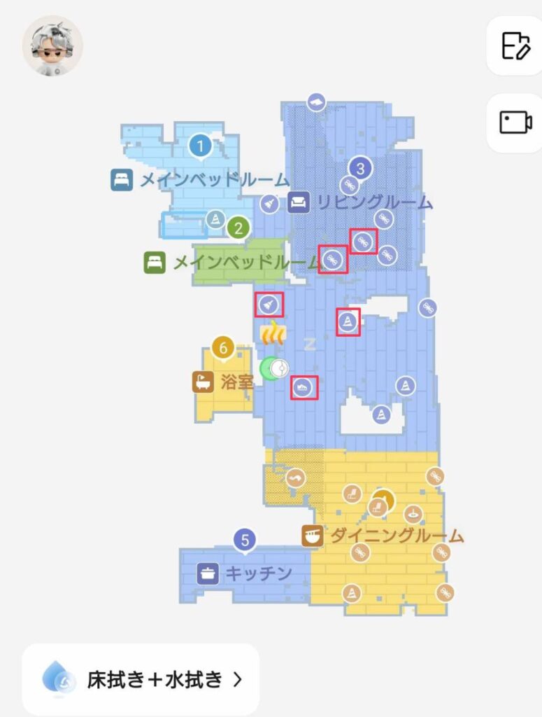 ホーム画面では掃除の開始や停止、掃除場所や掃除方法、掃除強度などの設定ができます😆
