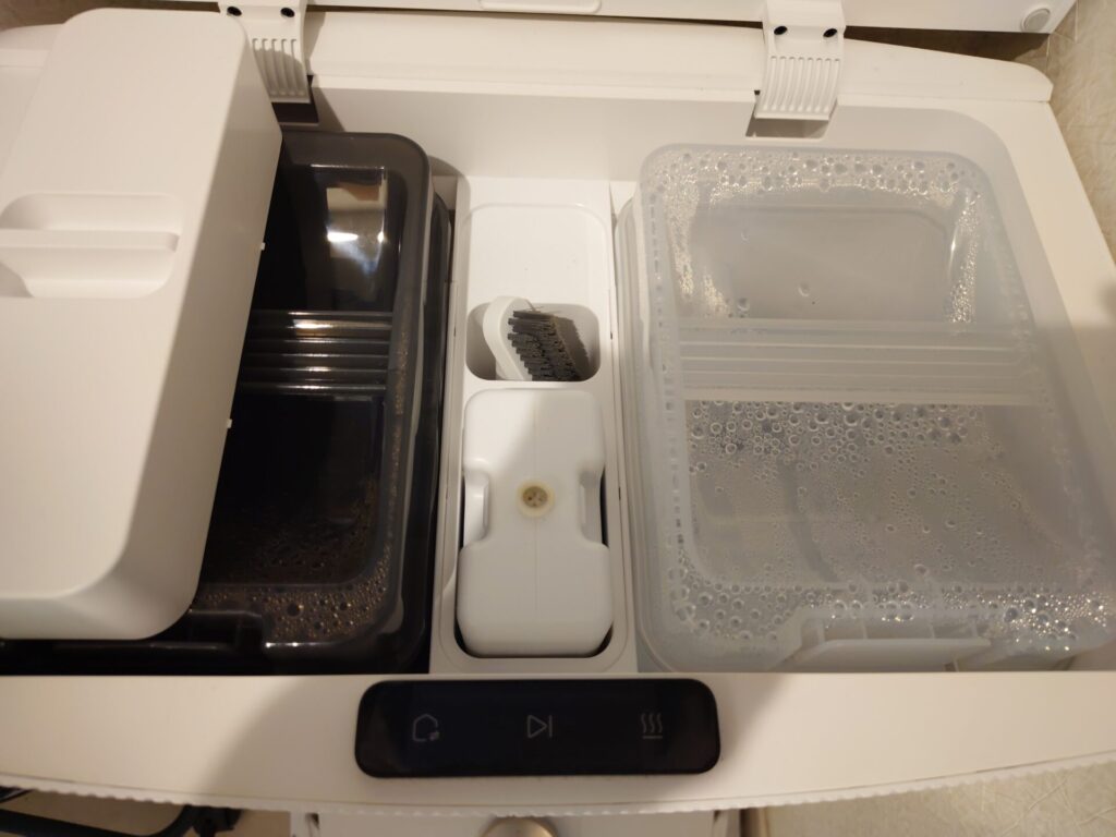 Dreame Aqua10 Ultra Rollerはモップをリアルタイムで洗浄しながら床のモップ掛けをすると言いましたが、モップ掃除終了後のベースステーションではなんと最大100℃でモップ洗浄するんです😆