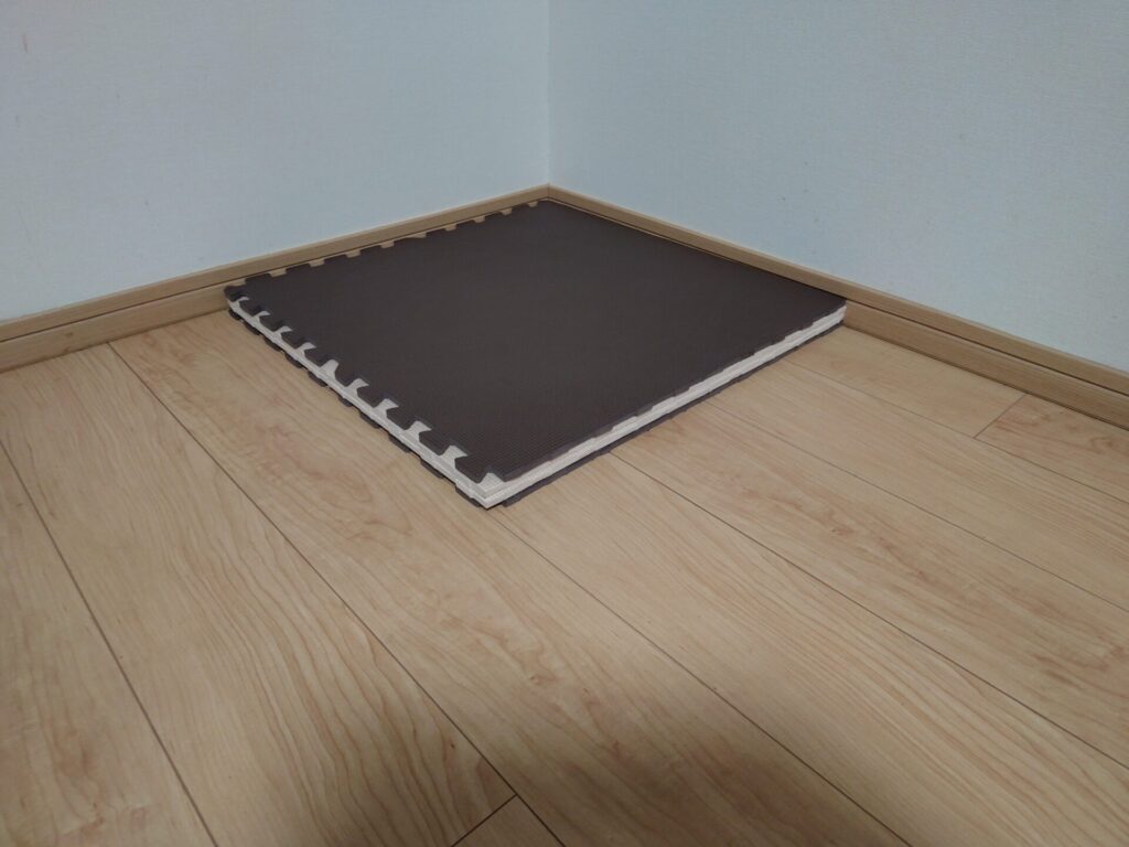 わたしの家には段差がないのでプレイマット4枚を重ねて4㎝の段差を用意しました✨