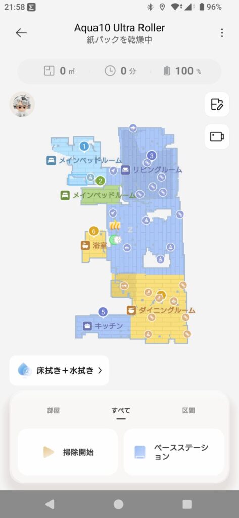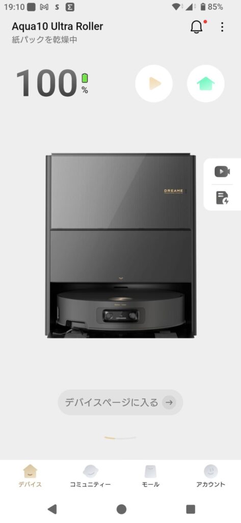 この画面からDreame Aqua10 Ultra Rollerの操作ページに入ります✨
