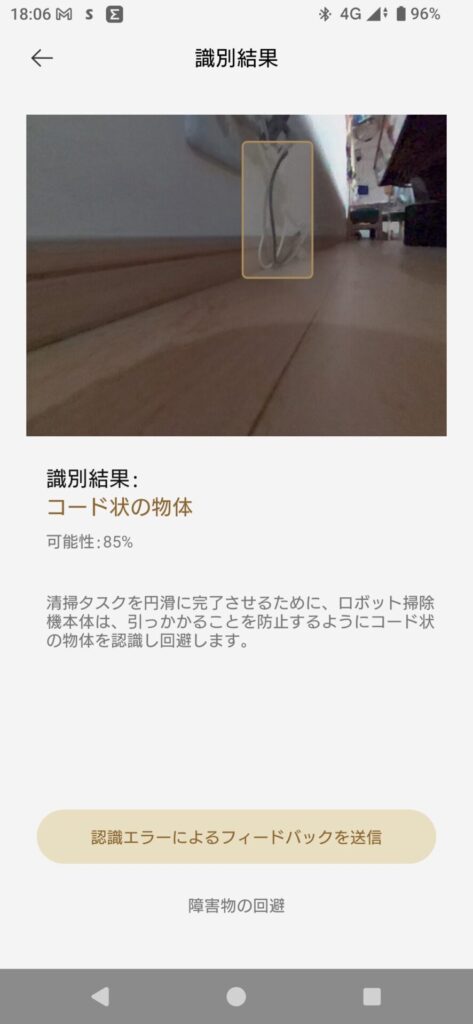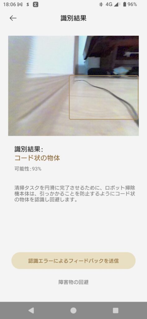 ロボット掃除機が苦手なコード類も正確に検知して写真で報告してくれます✨
