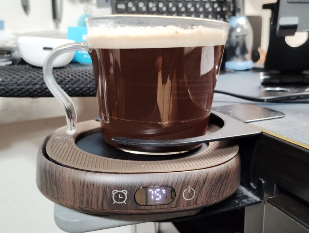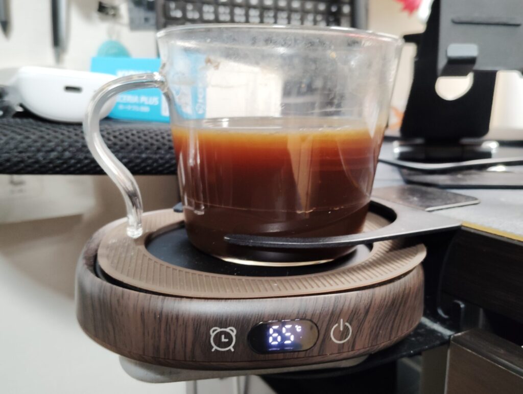 コーヒーの量が多いとさすがに45℃設定ではぬるくなるので75℃にして飲み進めると65℃にして少なくなると55℃にします😄