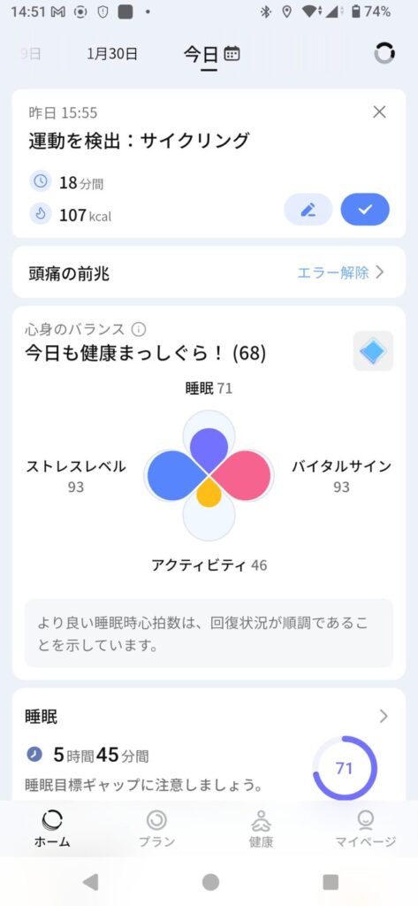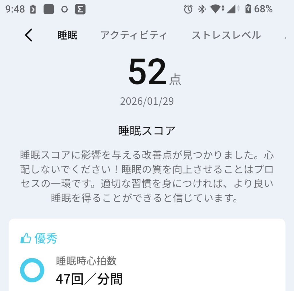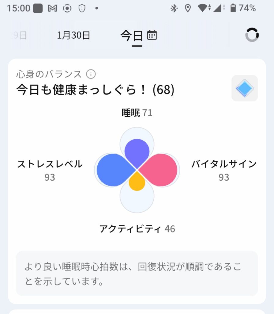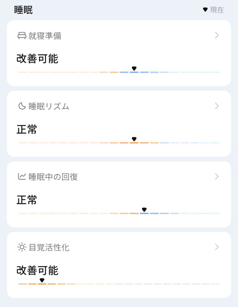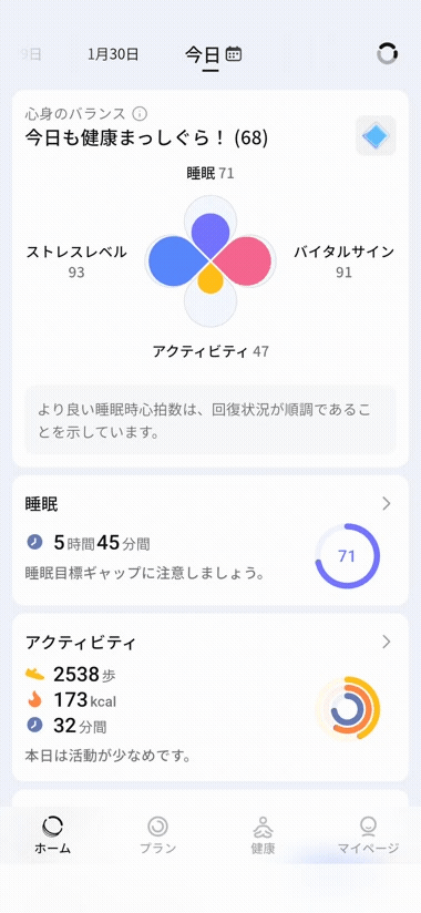 生活習慣はおもに「睡眠」「アクティビティ」を総合して点数がつきます😄