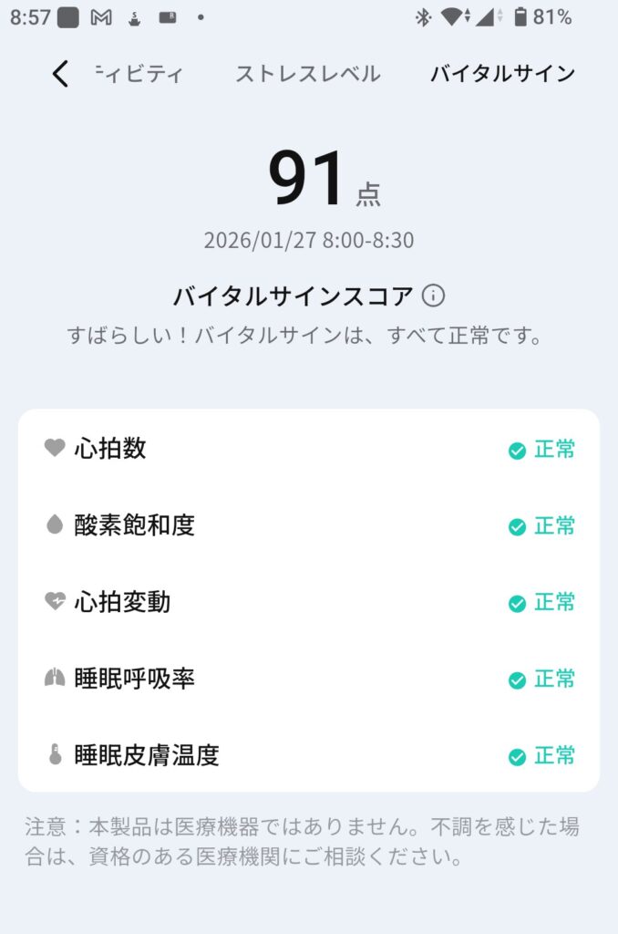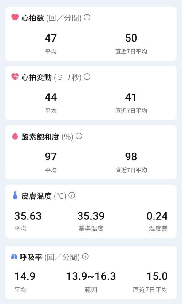 価格34,800円とスマートリングの中では中価格帯ですが、記録項目が多くて正確なんです😆とくに健康管理で必須の睡眠記録が充実しています✨