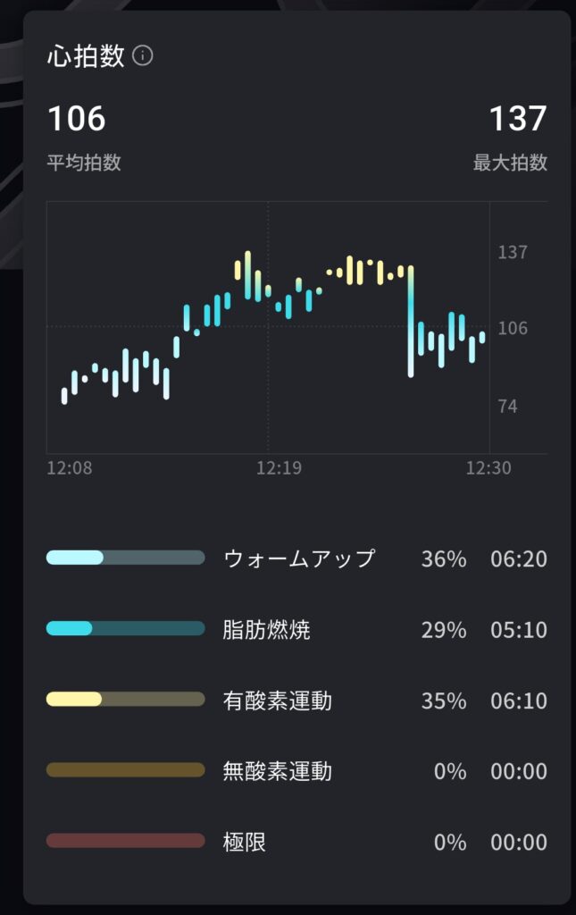 | 運動 | アウトドアウォーキング・アウトドアランニング・室内ランニング・インドアサイクリング・アウトドサイクリング・インドアローイングマシン・ ヨガ |