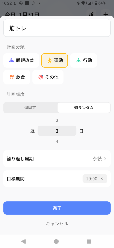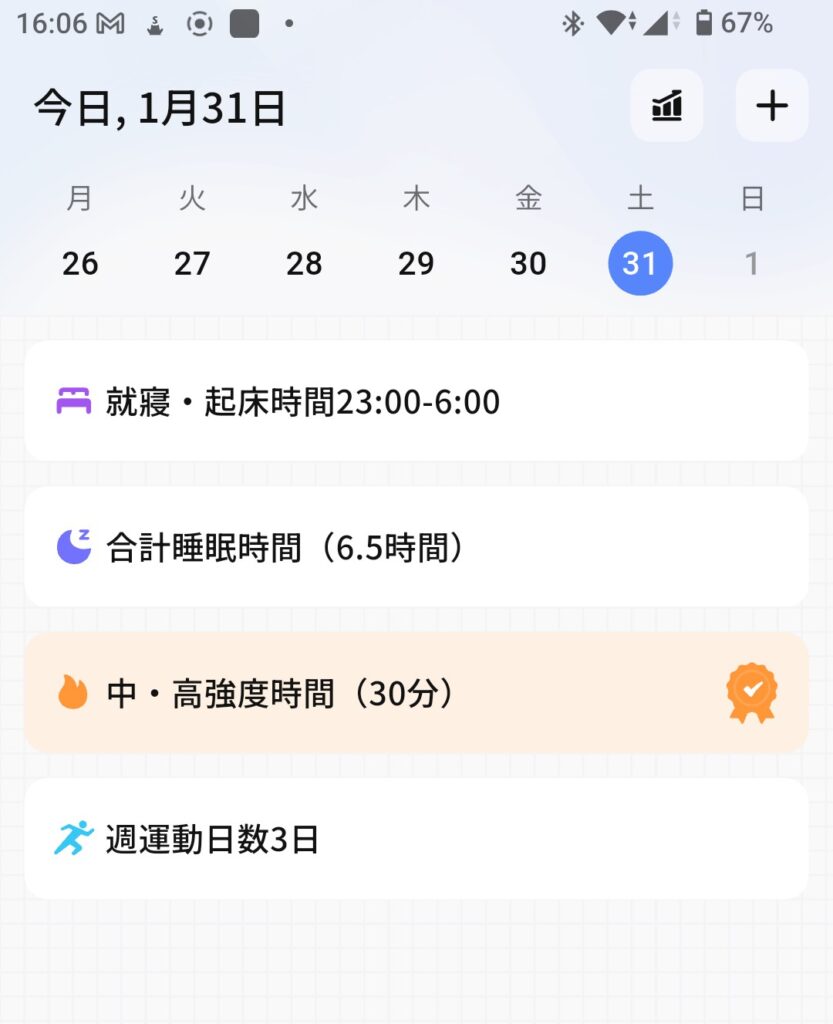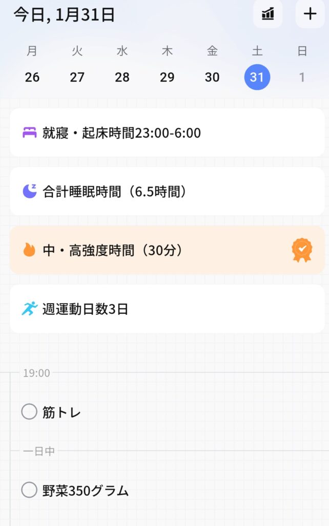 カスタム計画が達成できれば項目をタップすることで印がつきます✨