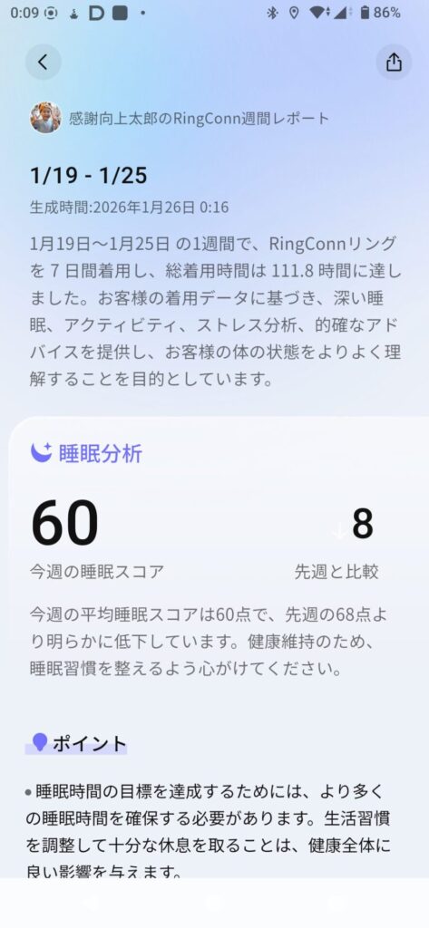 「RingConn Gen2 Airのアプリはめちゃくちゃ使いやすくて正確でこまかい記録やモチベーションアップの取り組みなどここまで充実したアプリが無料で使い放題なのは本当に凄い😆」