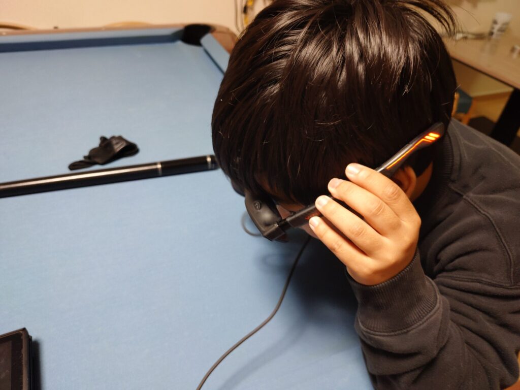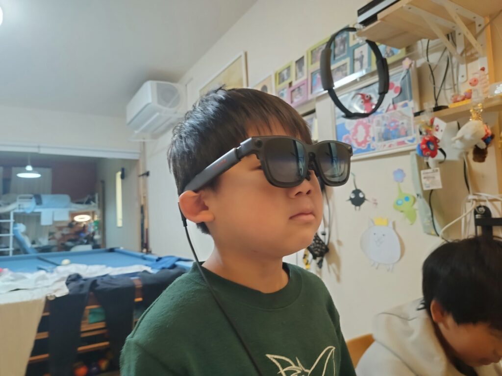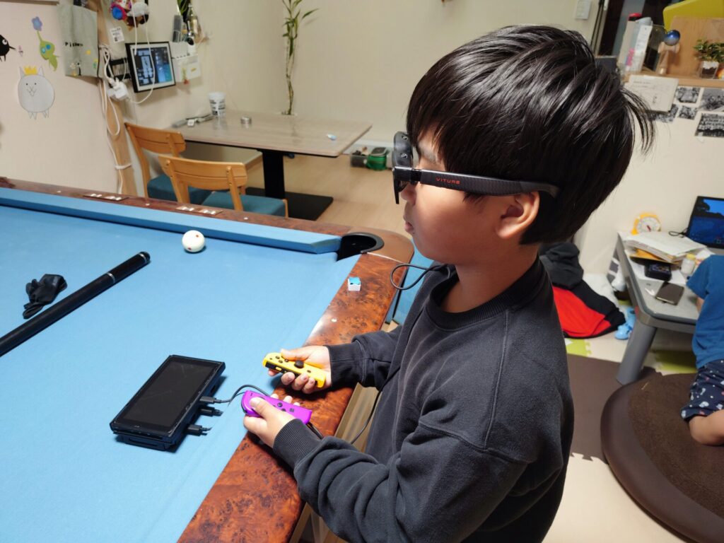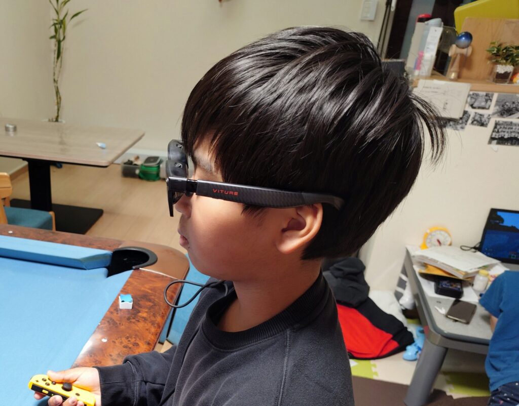 長男君がVITURE Luma UltraでSwitchを楽しんでいます✨長男君いわく「遅延は感じなくてめちゃくちゃプレイしやすい」そうです😄