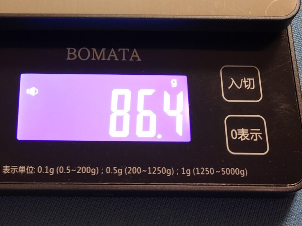 重さは実寸で86.4g