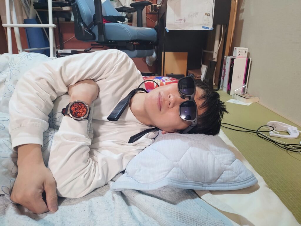 寝ながらでもテンプルや配線が邪魔にならないのがめちゃくちゃうれしい✨