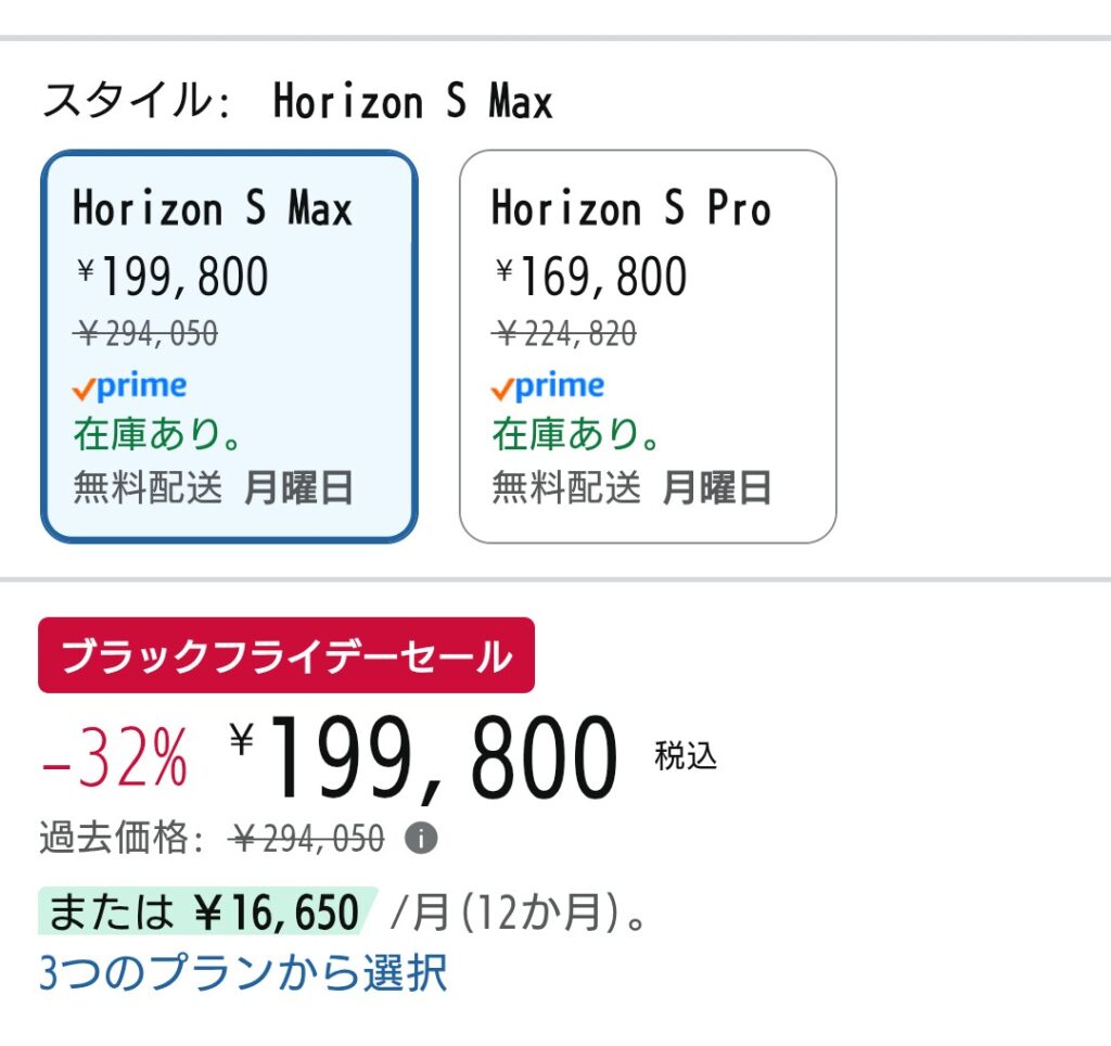| 製品名 | HORIZON S Max | HORIZON 20 Pro |